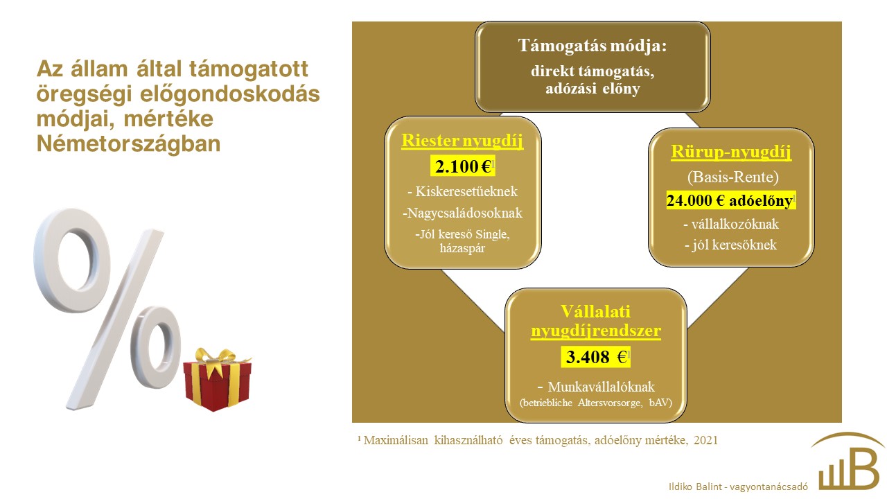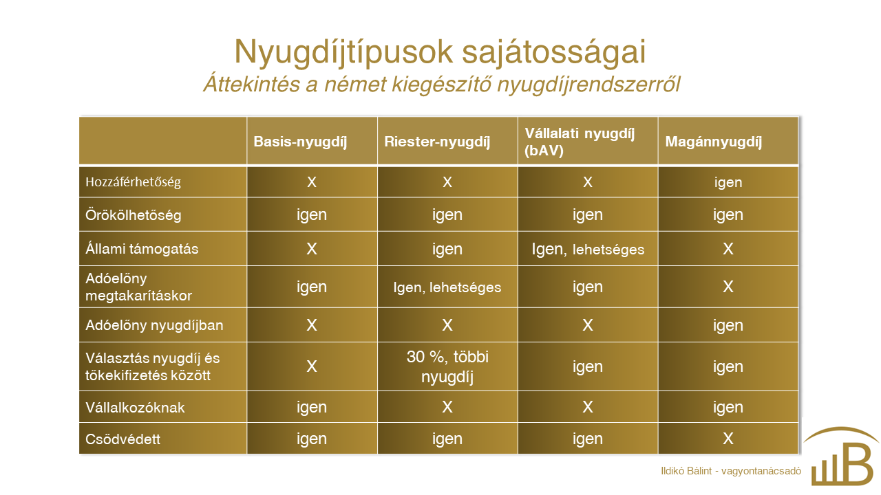 A német nyugdíjrendszer több pilléren nyugszik, az állami nyugdíjon kívül. Örömmel elmagyarázom Önnek, hogyan lehet okosan félretenni, hogy időskorában élvezze az életet, a megérdemelt pihenést vagy bepótoljon mindent, utazza be a világot – amit aktív évei alatt nem tehetett meg. További infót szeretnék!